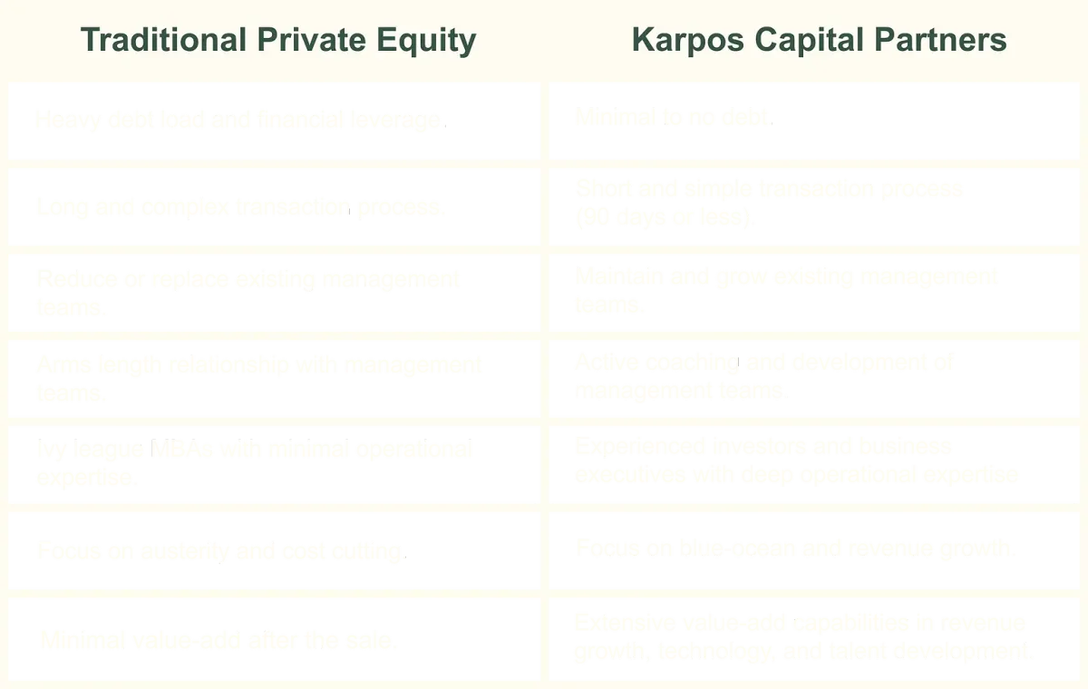 Objective: We buy companies from owners seeking a liquidity event and/or a business partner.